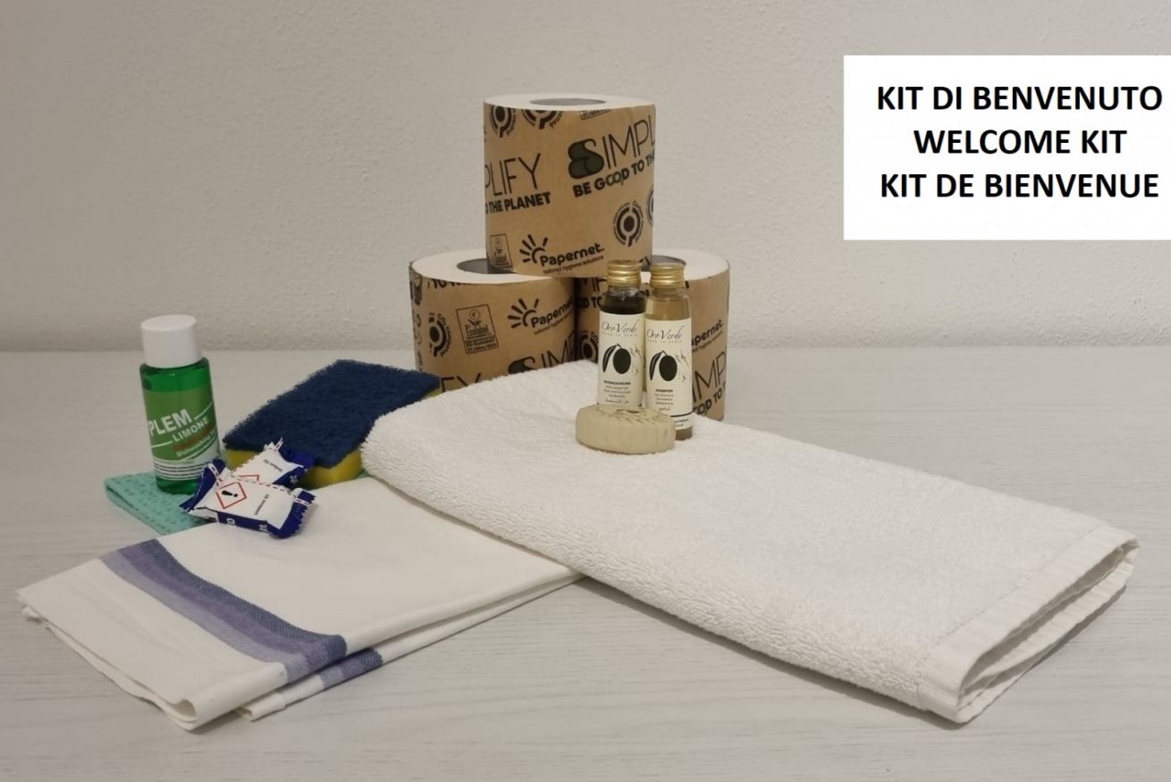 • Set cortesia bagno: sapone, shampoo, gel doccia e 3 rotoli di carta igienica per bagno.